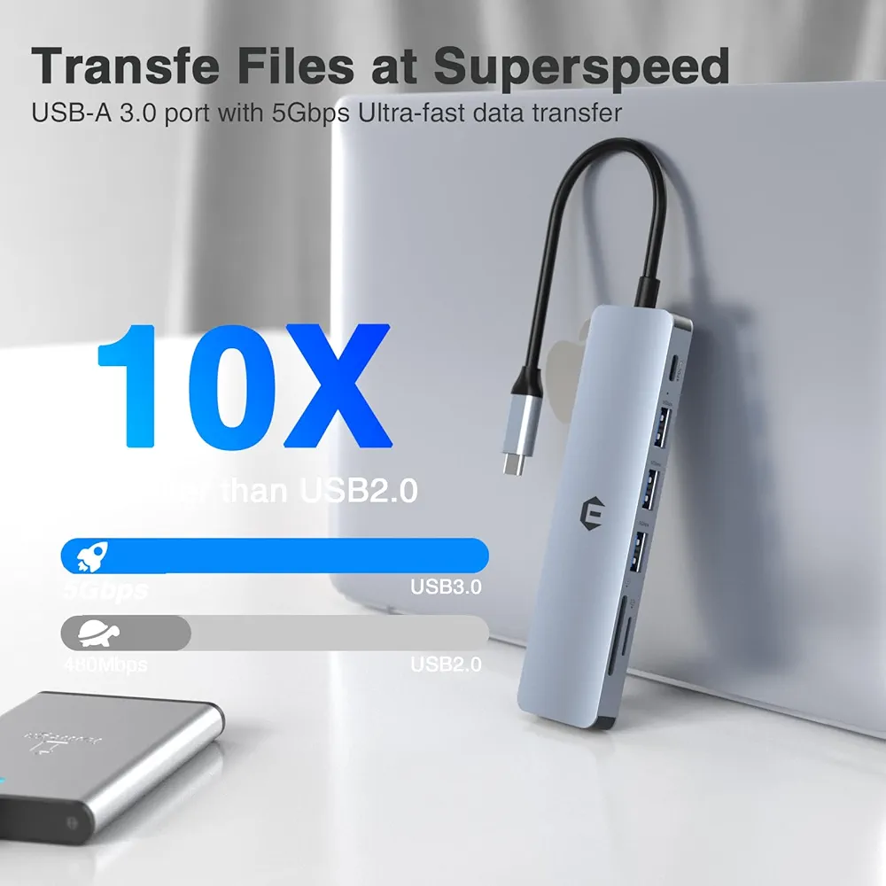 کارت خوان USB C: هاب USB داخلی با داک SD/TF، دسترسی آسان به کارت حافظه شما را فراهم میکند و صدها عکس را در عرض چند ثانیه با حداکثر سرعت 104 مگابایت بر ثانیه و بدون نیاز به کارت خوان یا آداپتور اضافی به لپتاپ شما منتقل میکند.